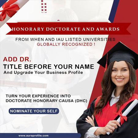 Based on your remarkable work, extensive experience, and outstanding accomplishments, Aura Profile Management Services (APMS) in collaboration with its network of esteemed universities is proud to offer individuals, including business entrepreneurs, professionals, social activists, celebrities, educationists, sports personalities, and leaders, an esteemed opportunity to receive an honorary degree or a PhD honorary award from renowned global universities.